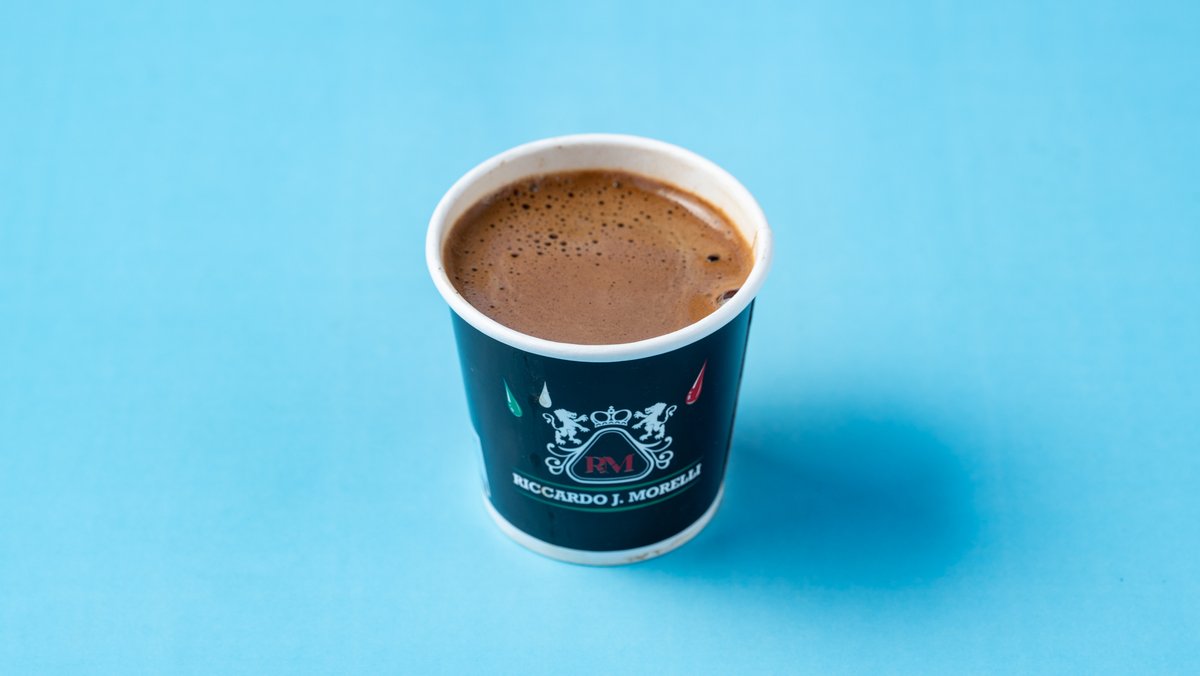 Μια ζεστή σοκολάτα και ενα μεγάλο ντόνατς με Μερέντα και επικάλυψη σοκολάτα
