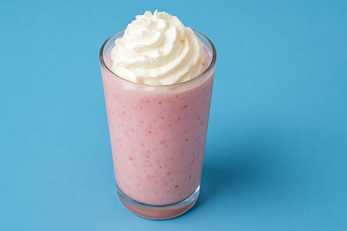 Milkshake φράουλα και ένα μεσαίο ντόνατς φράουλα με επικάλυψη φράουλα σοκολάτα