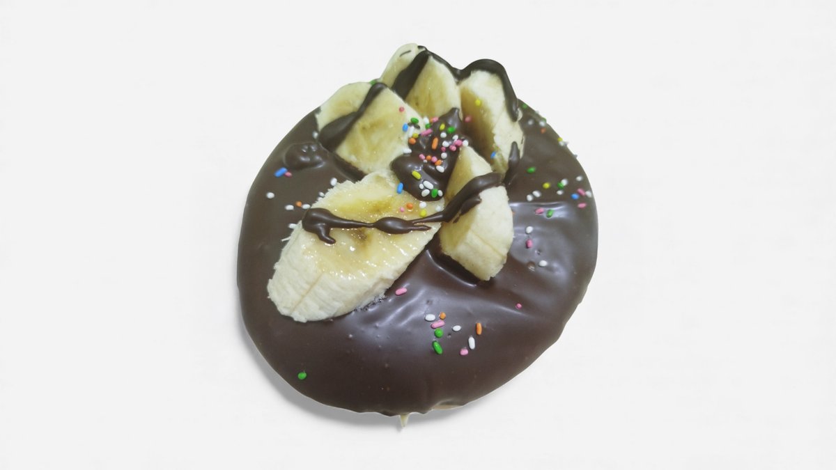 Με πραλινα μπανάνας επικάλυψη σοκολάτας και με φρέσκα κομμάτια μπανάνας