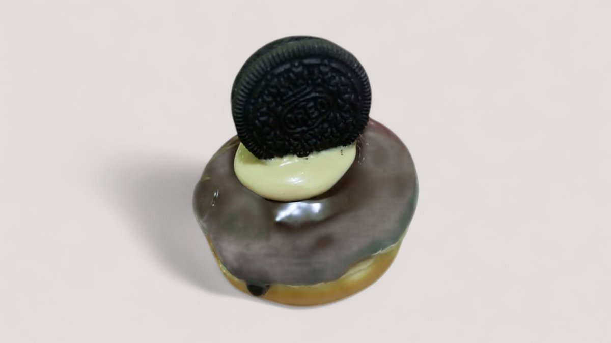 Μια ζεστή σοκολάτα Dubai και ένα μεγάλο ντόνατς με Bueno και επικάλυψη άσπρη σοκολάτα