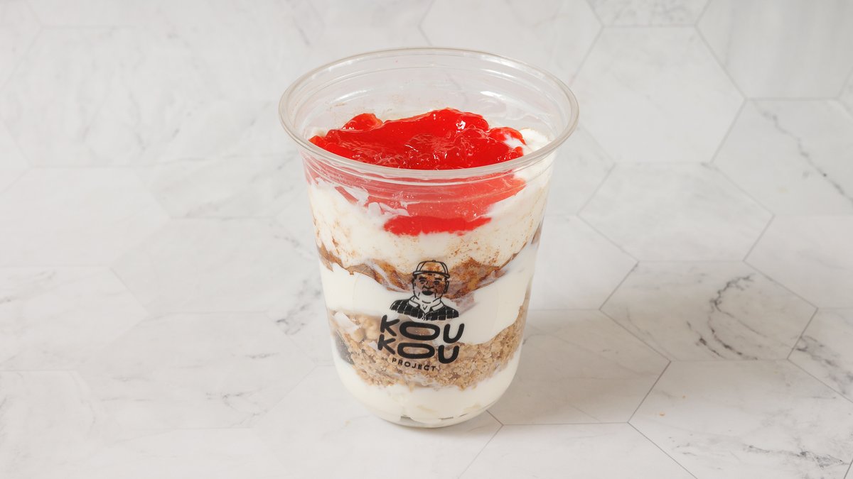 Γιαούρτι, γκρανόλα, φυστικοβούτυρο, κανέλα και μαρμελάδα φράουλα