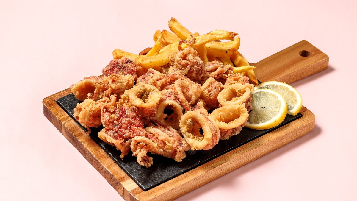 2 Μερίδες Καλαμαράκια + 1 Πατάτες Τηγανητές + 1 πολίτικη