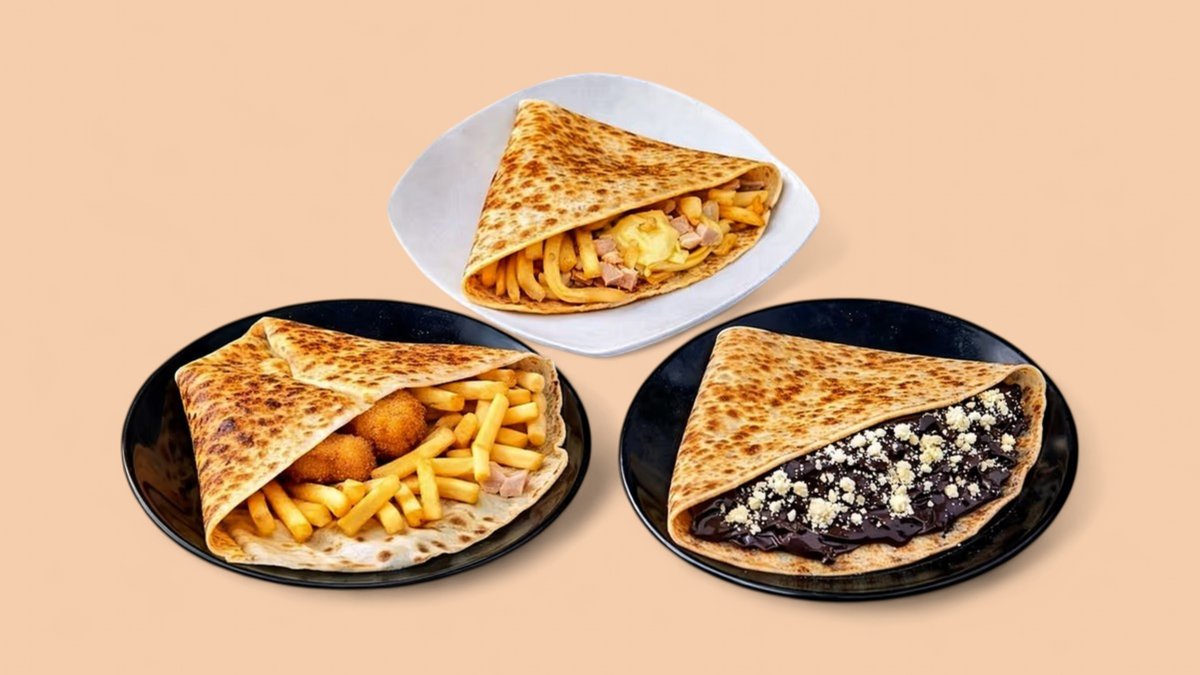 2 Αλμυρές Κρέπες + 1 Κρέπα Σοκολάτα μπισκότο