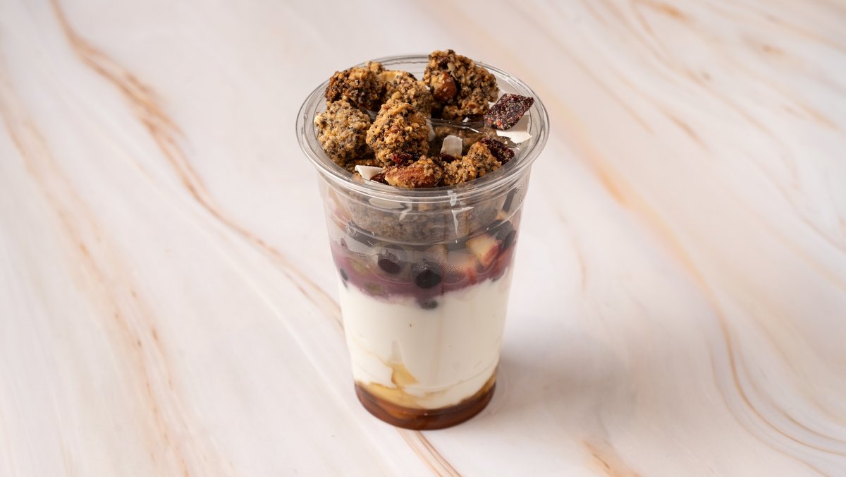 Γιαουρτι καρυδας , σοκολατα , φυστικοβουτυρο,granberries, μπανανα & granola