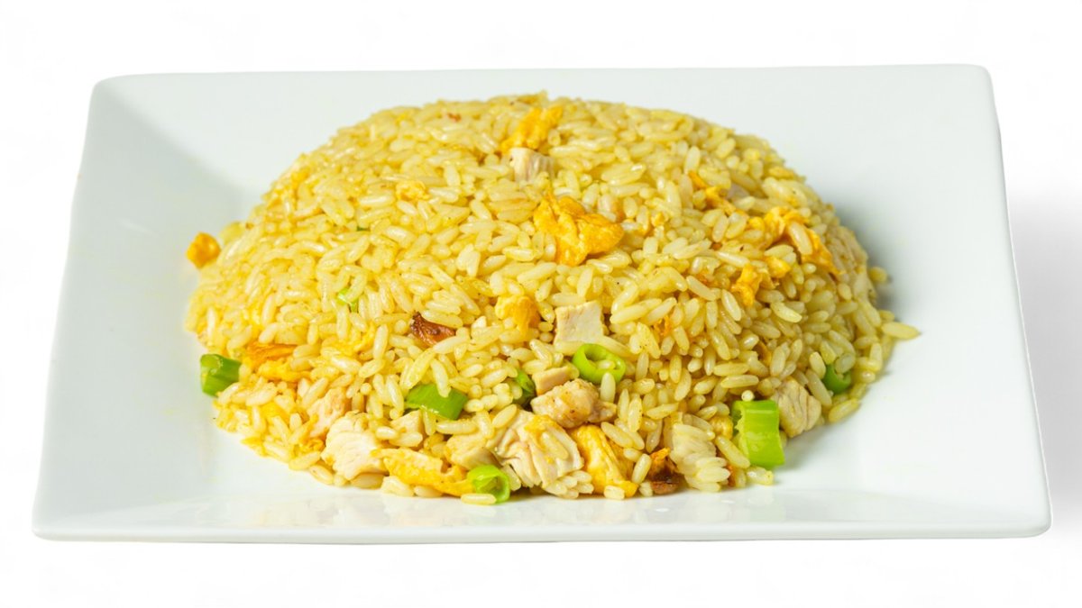 Με κοτόπουλο παναρισμένο και σάλτσα κάρυ. Συνοδεύεται από ρύζι ατμού και λαχανικά
