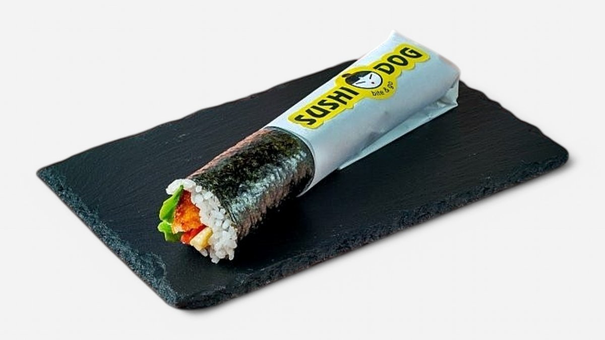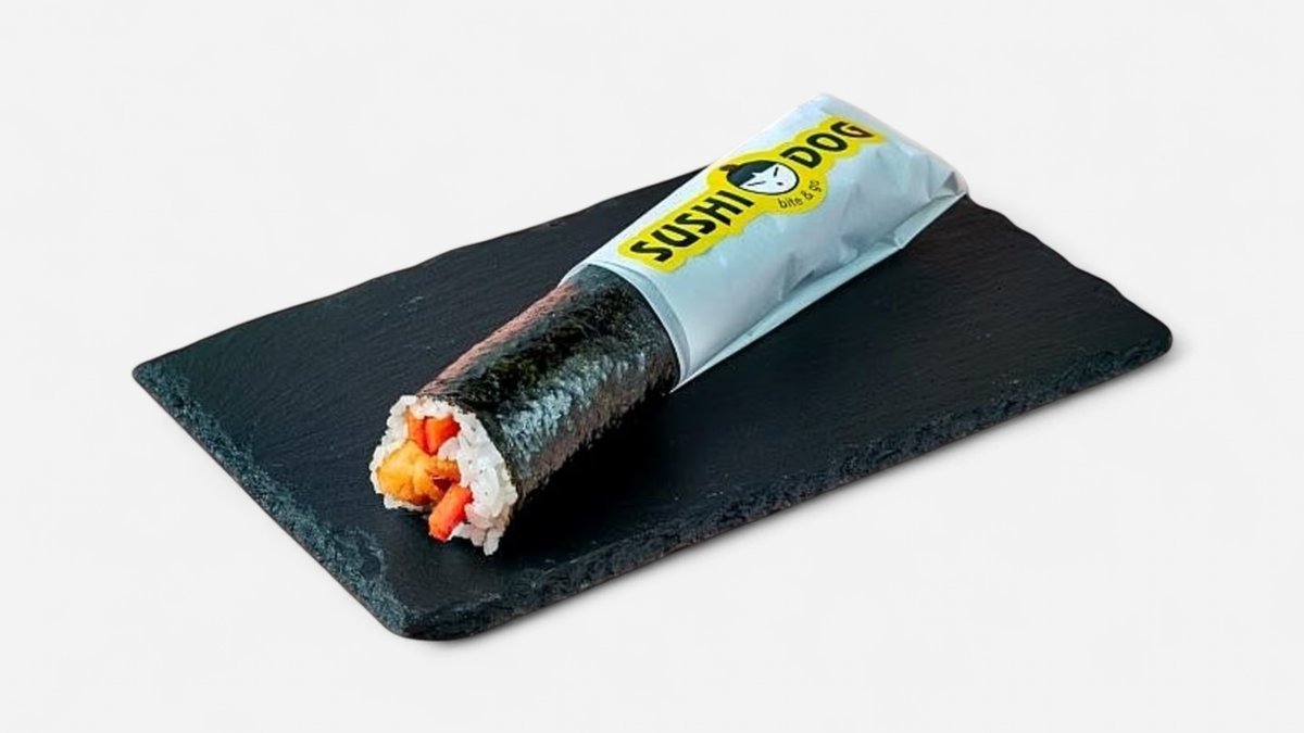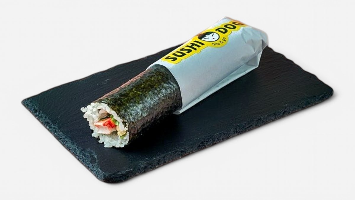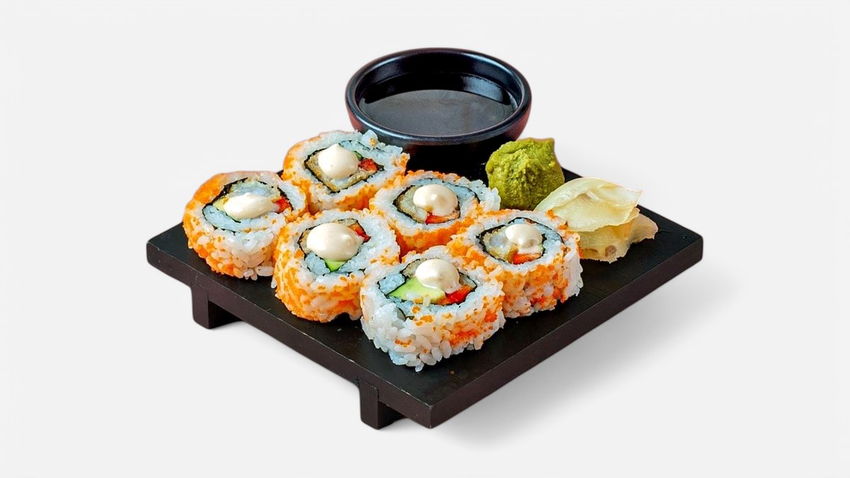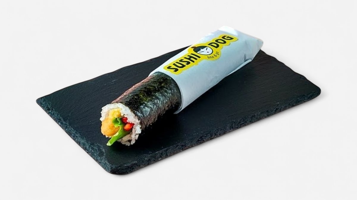 Ολόκληρο ρολό maki με κοτόπουλο πανέ, κόκκινη πιπεριά, μαρούλι και baby corn