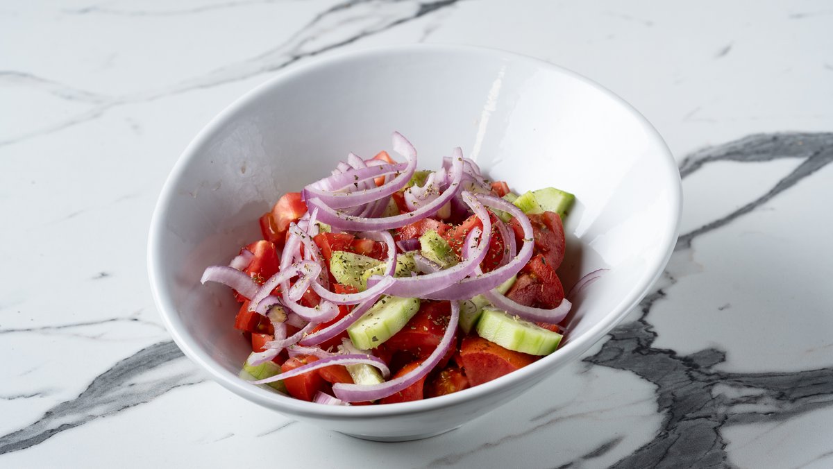 Με ντομάτα, αγγούρι, φέτα, ελιά, κρεμμύδι και πιπεριά
