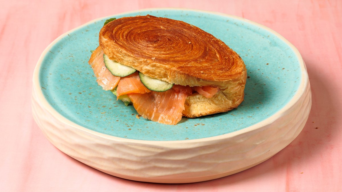 Κρουασάν αυγόφετα, λουτζα, κρέμα 3 λευκών τυριών, μαρούλι