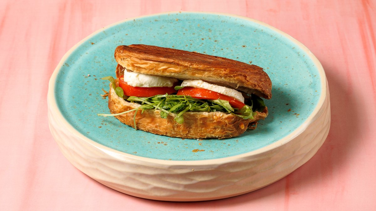 Διπλοψημένο κρουασάν με κρέμα πατισερι και μαρμελάδα