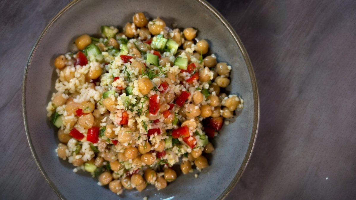 Δροσερή και θρεπτική σαλάτα με ρεβύθια και πλιγούρι με φρέσκα μυρωδικά και άρωμα λάιμ