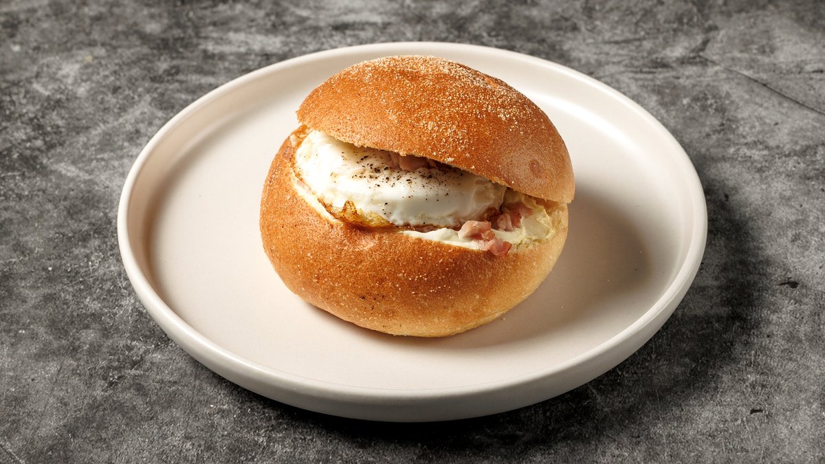 Στρογγυλό Ψωμάκι με Σως Μουστάρδας, Αβγό καιαι Μπέικον