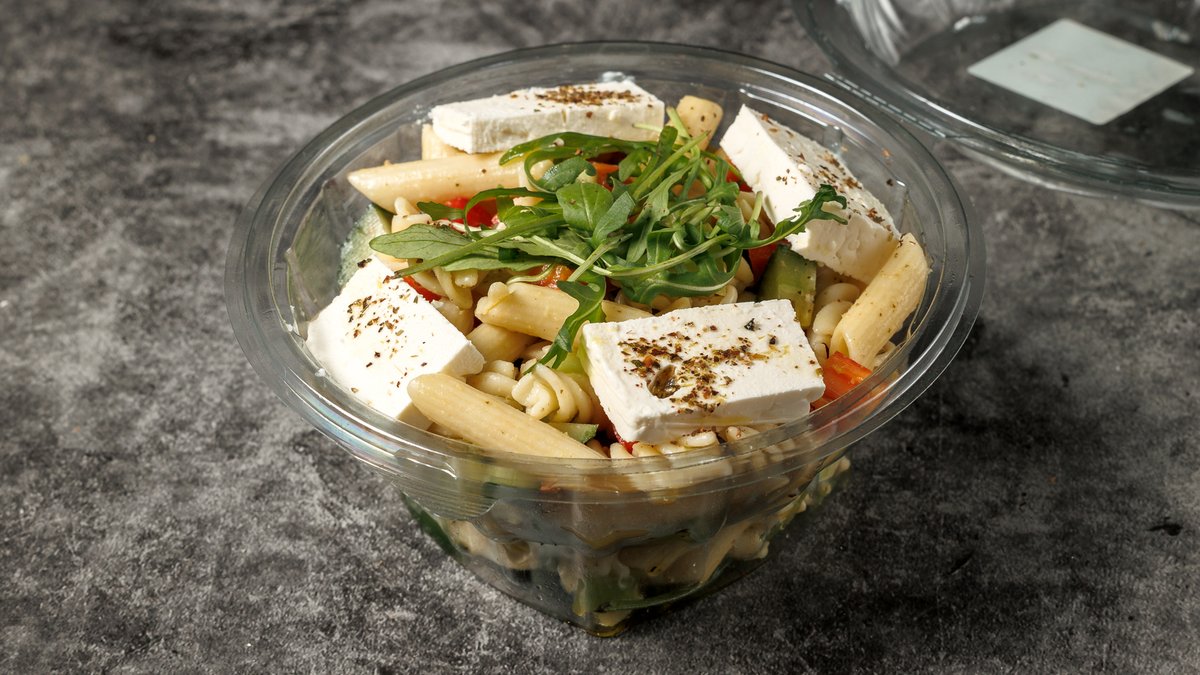 Μακαρονοσαλάτα, Ρόκα, Ντοματίνια, Πράσινη και Κόκκινη Πιπεριά, Αγγουράκι, Φέτα