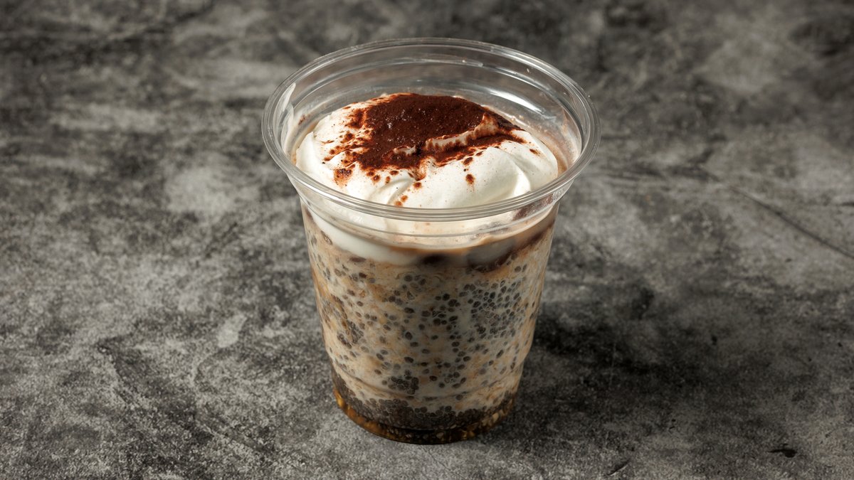 Πρωινό με Βρώμη και Σοκολάτα Βρώμη, Σπόροι Τσια, Μελι, Ρόφημα Αμυγδάλου, Γιαούρτι Αγελάδας, Κομματάκια Σοκολάτας
