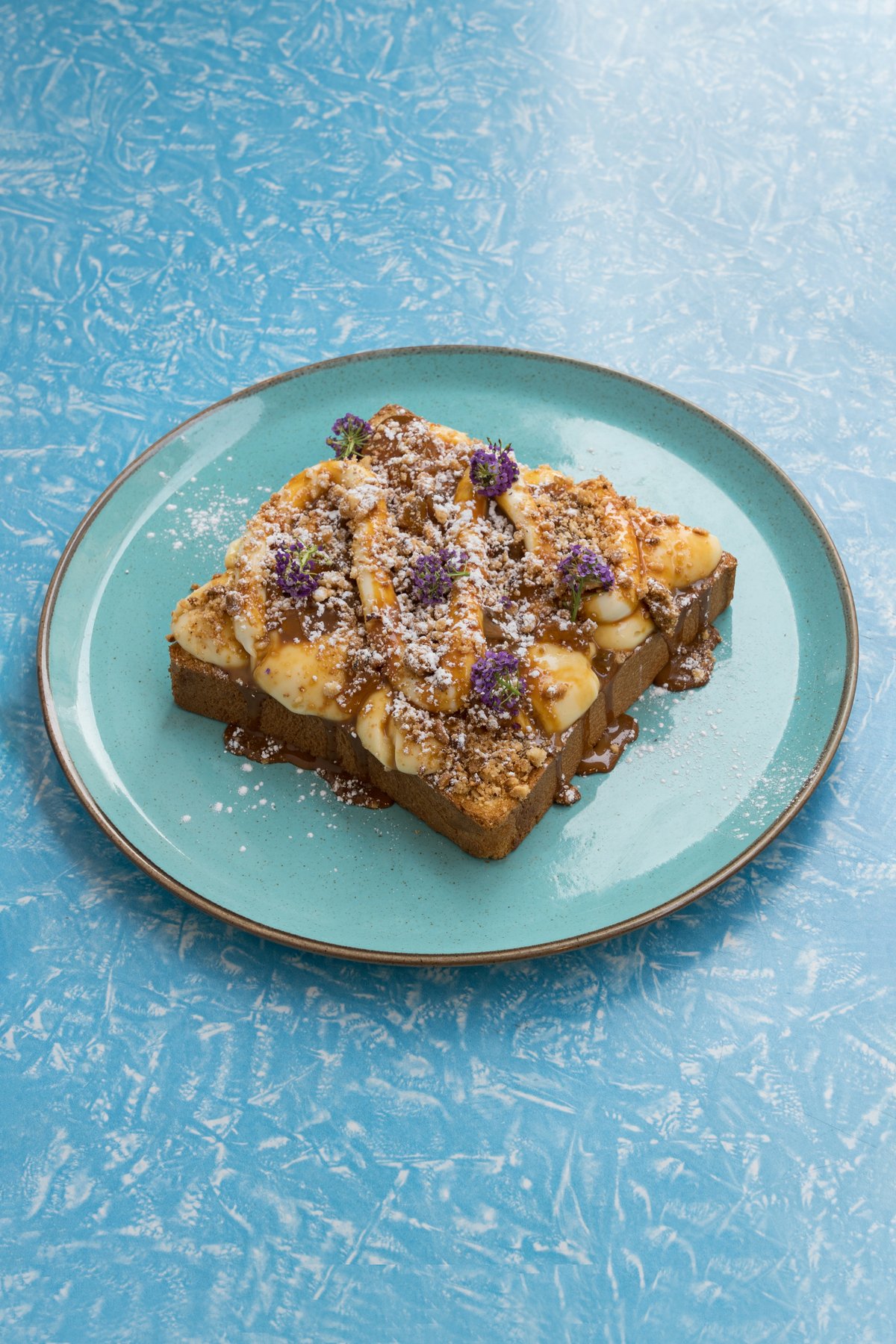 Με προζυμένιο ψωμί, καπνιστό μετσοβόνε, καπνιστή γαλοπούλα, τηγανιτό αυγό, μπεσαμέλ και σπιτική σάλτσα φέτας
