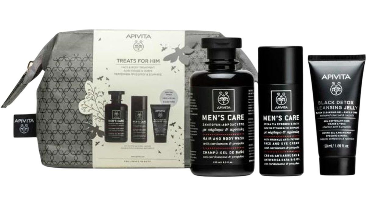 34,50 €Apivita Promo Pack Treats For Him Men's Care Αντιρυτιδική Κρέμα για Πρόσωπο & Μάτια με Κάρδαμο & Πρόπολη 50 ml Σαμπουάν Αφρόλουτρο με Κάρδαμο και Πρόπολη 250 ml & Black Detox Cleansing Jelly 50 ml
