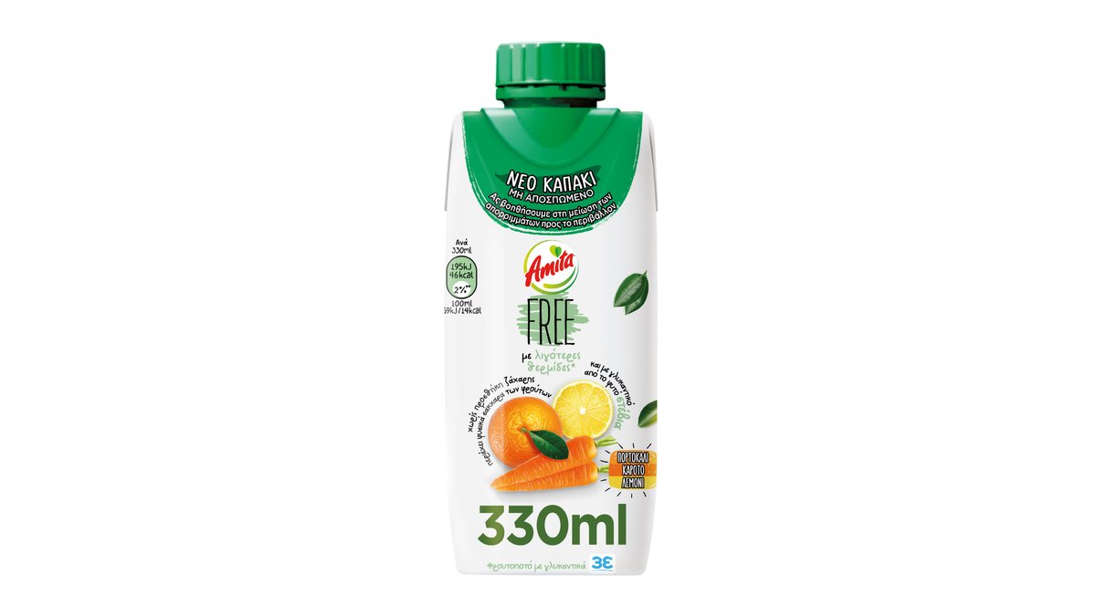 Amita Free Πορτοκάλι, Καρότο και Λεμόνι Stevia 0.33 l