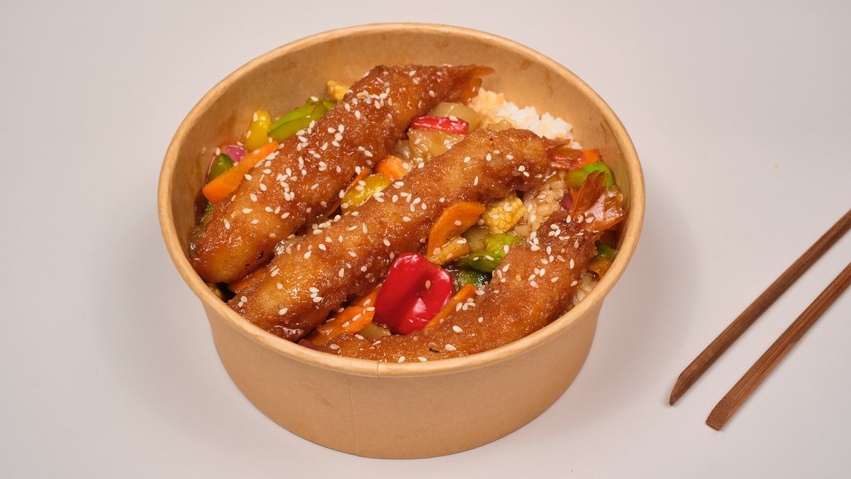 Με τηγανητή γαρίδα, κρέμα τυριού, αυγά χελιδονόψαρου και sweet chilli