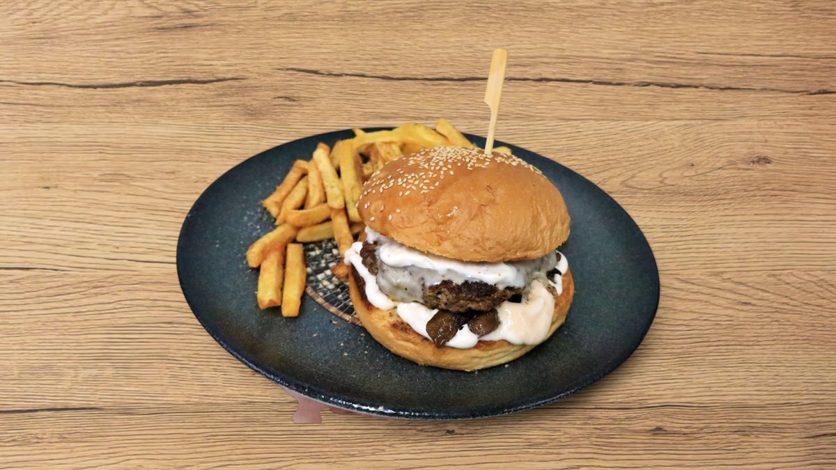 Με 100% μοσχαρίσιο bully smash burger 175gr, γραβιέρα, parmesan sause, καραμελωμένα μανιτάρια και truffle mayo. Συνοδεύεται από πατάτες τηγανιτές