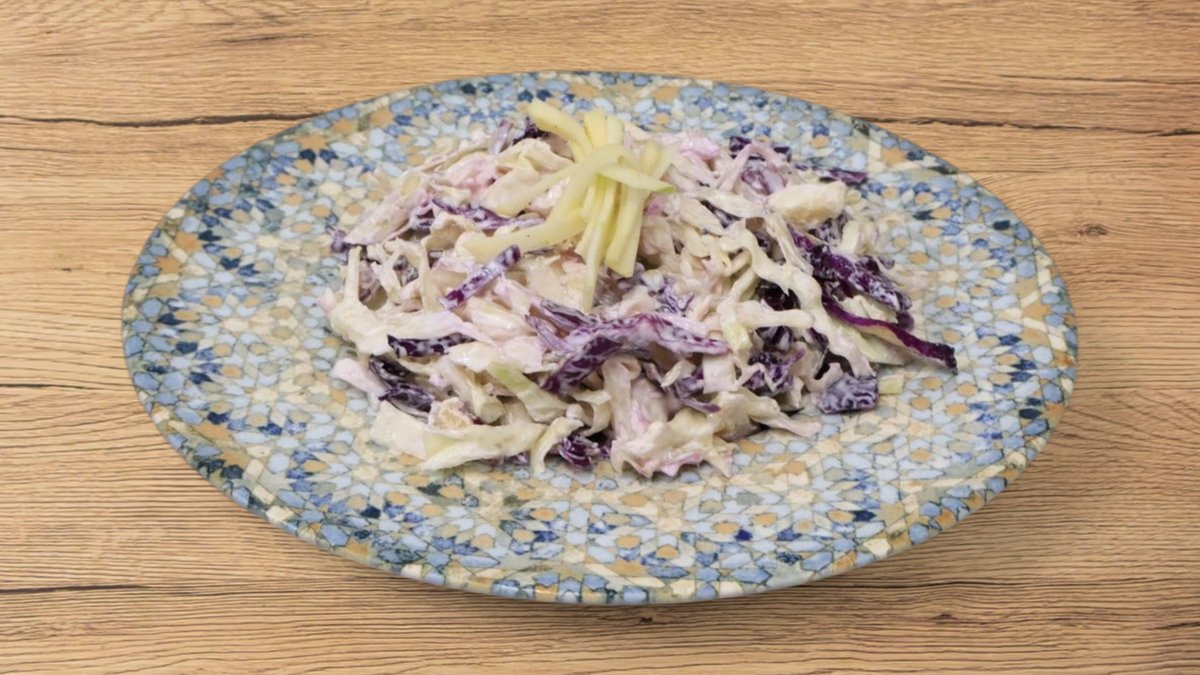 Σαλάτα με λάχανο κόκκινο, λάχανο λευκό, καρότο, μήλο πράσινο και σάλτσα coleslaw