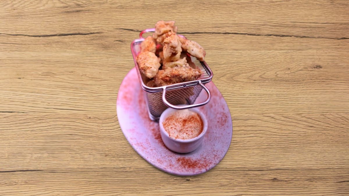 Με fried chicken σε λαχταριστές λωρίδες και dip sauce μουστάρδας