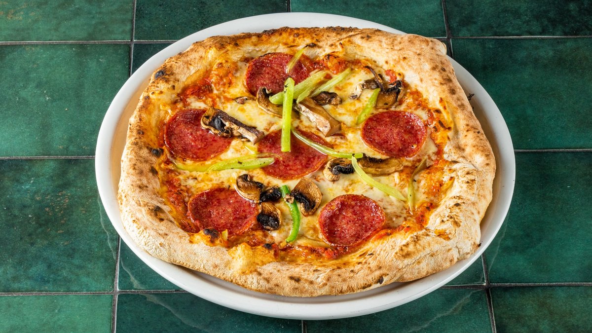 Με zαμπόν, μπέικον, μανιτάρι και πιπεριά πράσινη