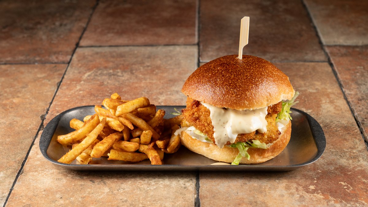 Με μπιφτέκι μοσχαρίσιο black angus, provolone, μπέικον, αυγό και sweet chili mayo sauce. Συνοδεύεται από πατάτες crispers