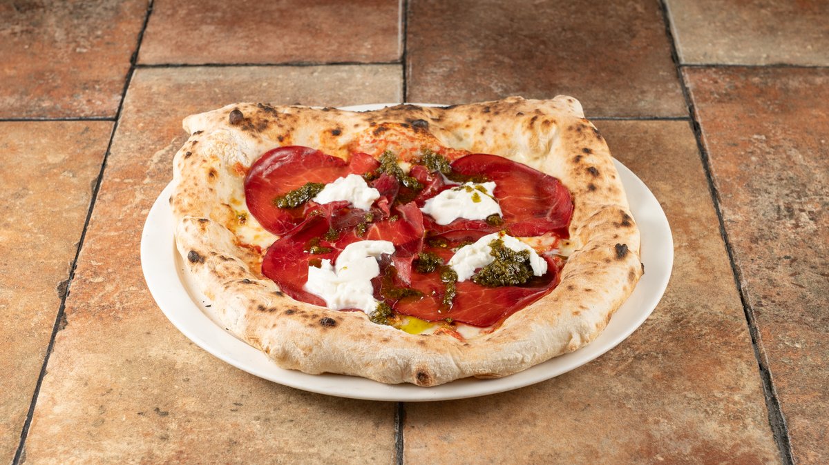 Με τομάτα σάλτσα, μοτσαρέλα, bresaola, chimichurri