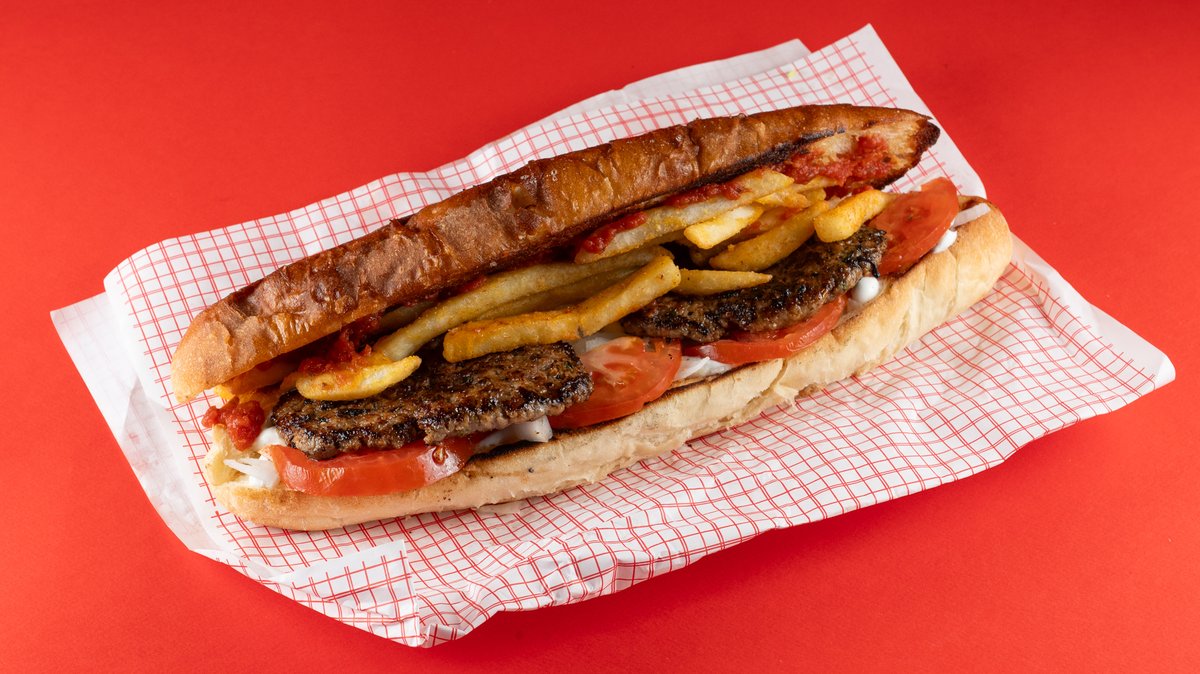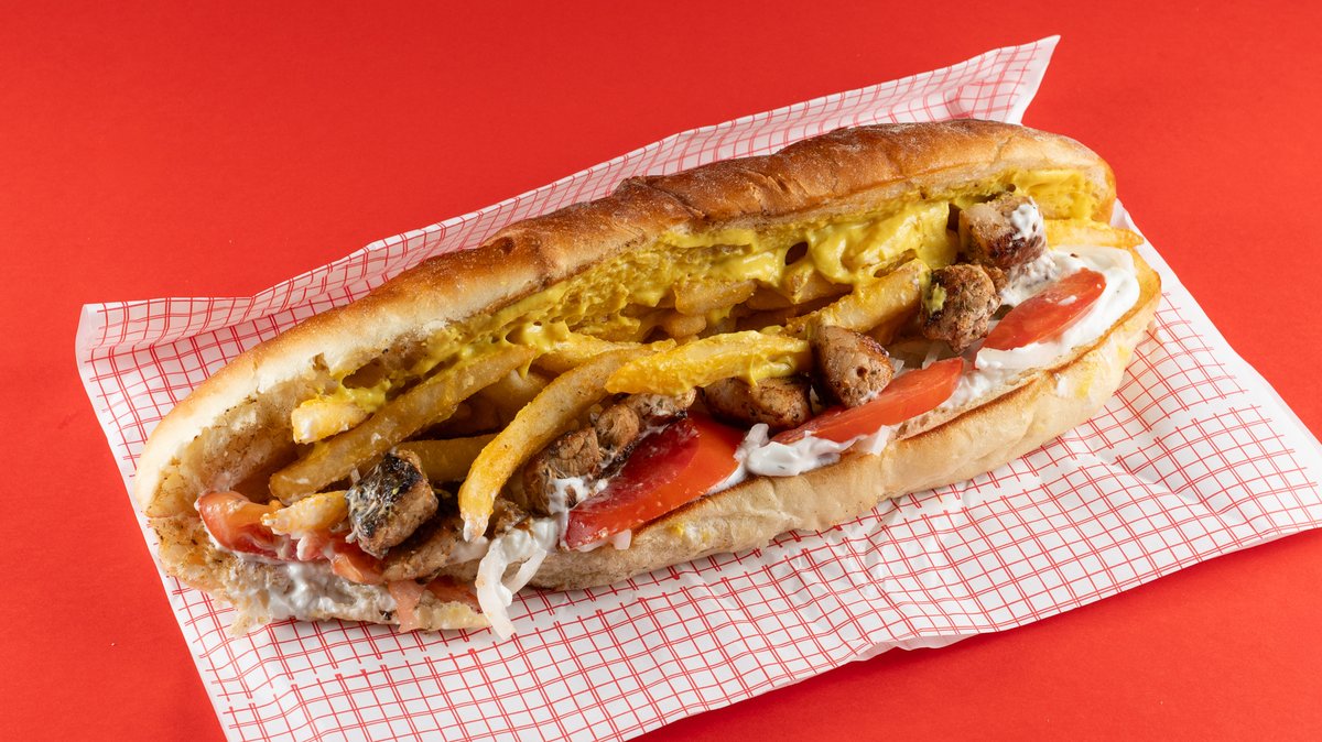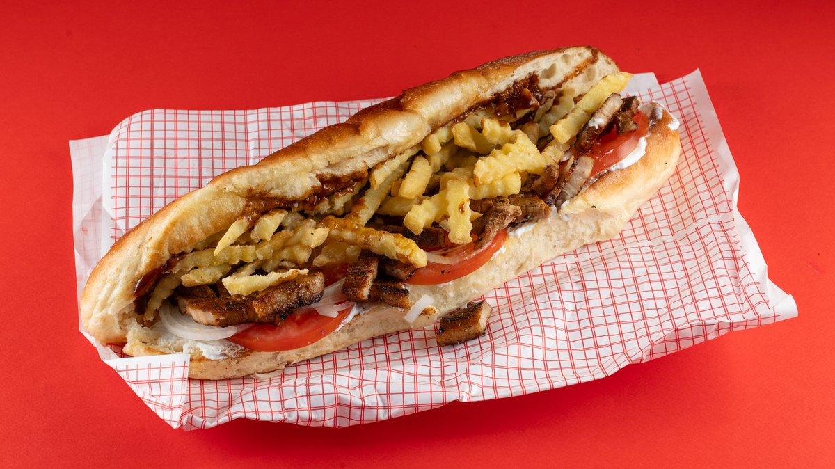 Με ψωμάκι 35 εκατοστά, σις κεμπάπ πολίτικο, σως γιαούρτι, χειροποίητη σάλτσα ντομάτας, κρεμμύδι και πατάτες τηγανητές