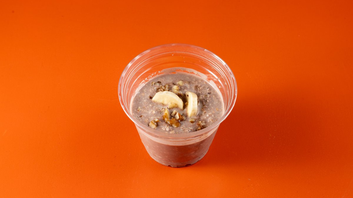 Μια γλυκιά και θρεπτική επιλογή με overnight oats, σοκολάτα, φρέσκια μπανάνα και τραγανά καρύδια. Ιδανικό πρωινό ή snack γεμάτο ενέργεια και χορταστική γεύση!