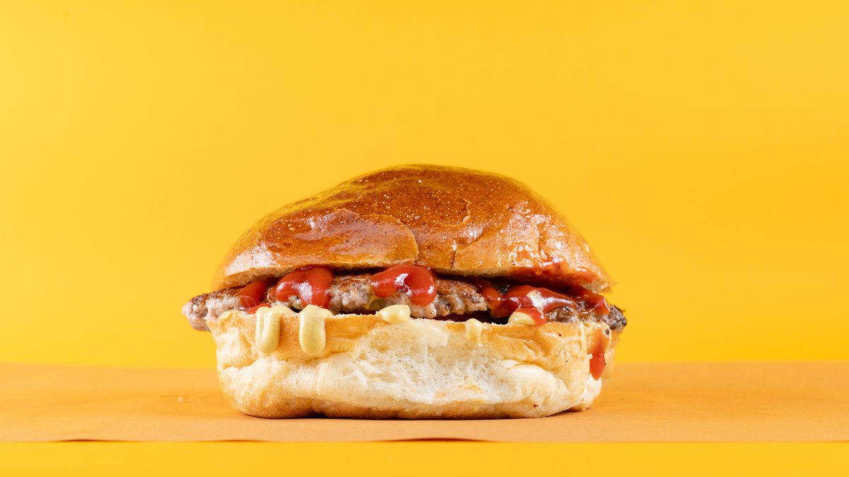Brioche με μπιφτέκι χειροποίητο από 100 % μοσχαρίσιο κιμά 140 g ψημένο medium well, ketchup και μουστάρδα