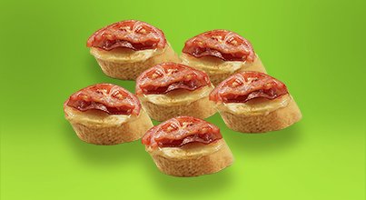 Φρυγανισμένες φέτες ψωμί του τοστ, Philadelphia, φιλέτο κοτόπουλου, ρόκα, ντομάτα. Συνοδεύεται με πατάτες Crosscut.