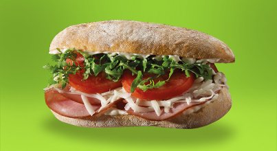Gouda, γαλοπούλα, φρέσκια ντομάτα, iceberg, μαγιονέζα.
