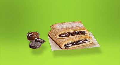 Ζυμάρι σφολιάτας με Merenda & μπισκότα Oreo γεμισμένα με λαχταριστή κρέμα cheesecake φράουλα, πασπαλισμένο με ζάχαρη άχνη.
