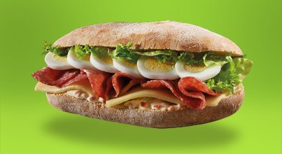 Gouda, σαλάμι αέρος, αυγό, iceberg, sauce Fan.