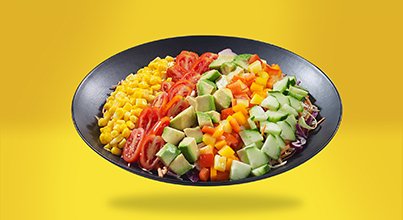 Λάχανο άσπρο - κόκκινο, καρότο, ντοματίνια, καλαμπόκι, αβοκάντο, τρίχρωμες πιπεριές, αγγούρι και dressing εσπεριδοειδών