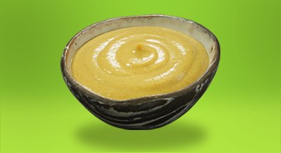 Κρεμώδης σάλτσα με κρέμα γάλακτος και ψημένο μπέικον. Συνοδεύεται από μπολάκι με σκληρό τυρί.