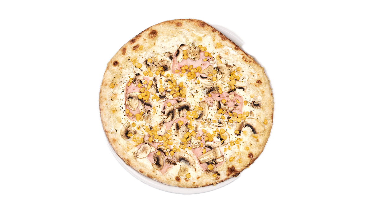 Με μοσχαρίσιο ζαμπόν, μπέικον, λουκάνικο, μανιτάρι, πιπεριά και κρέμα γάλακτος
