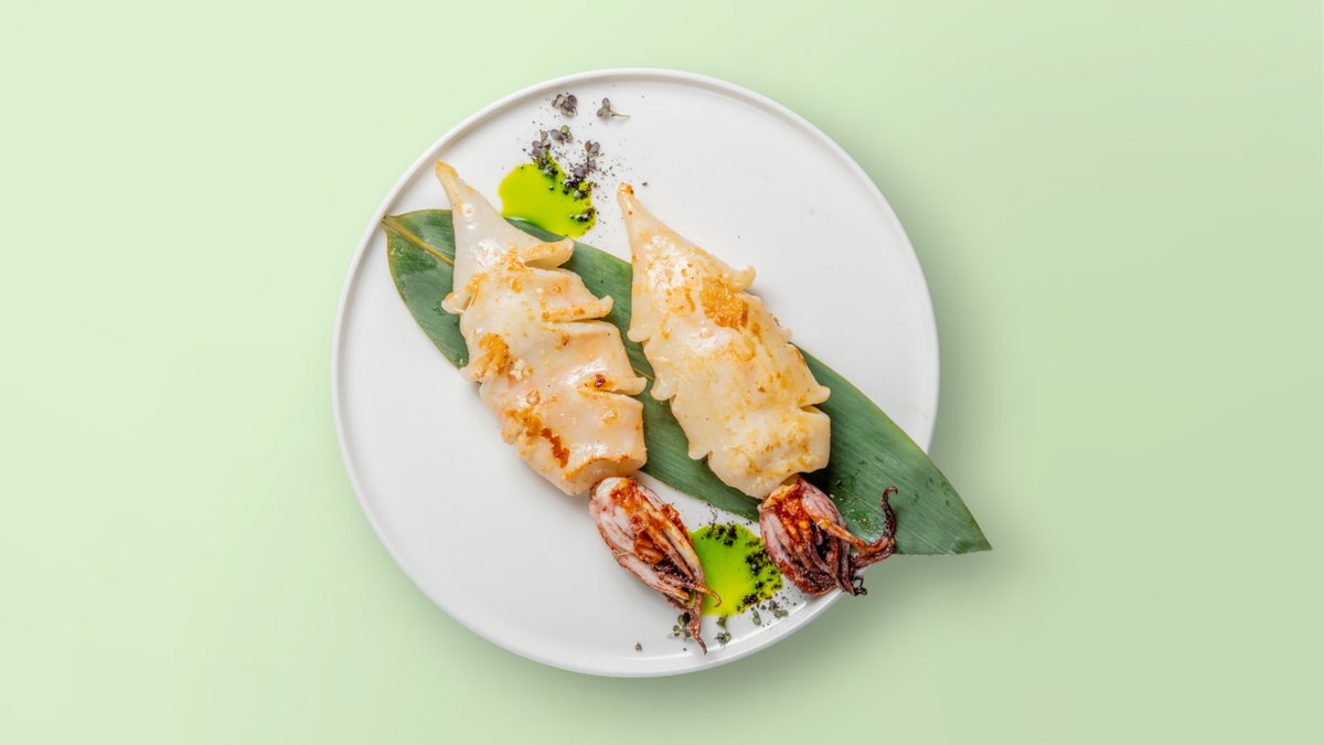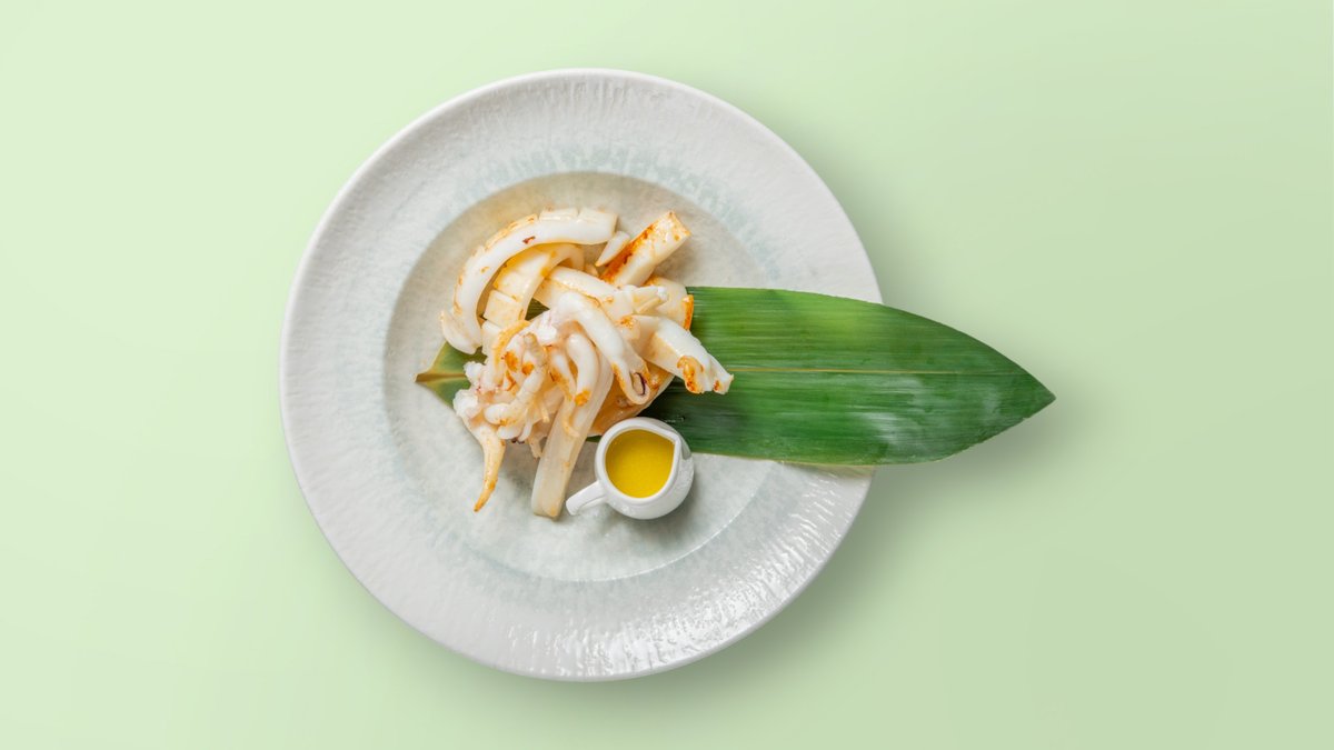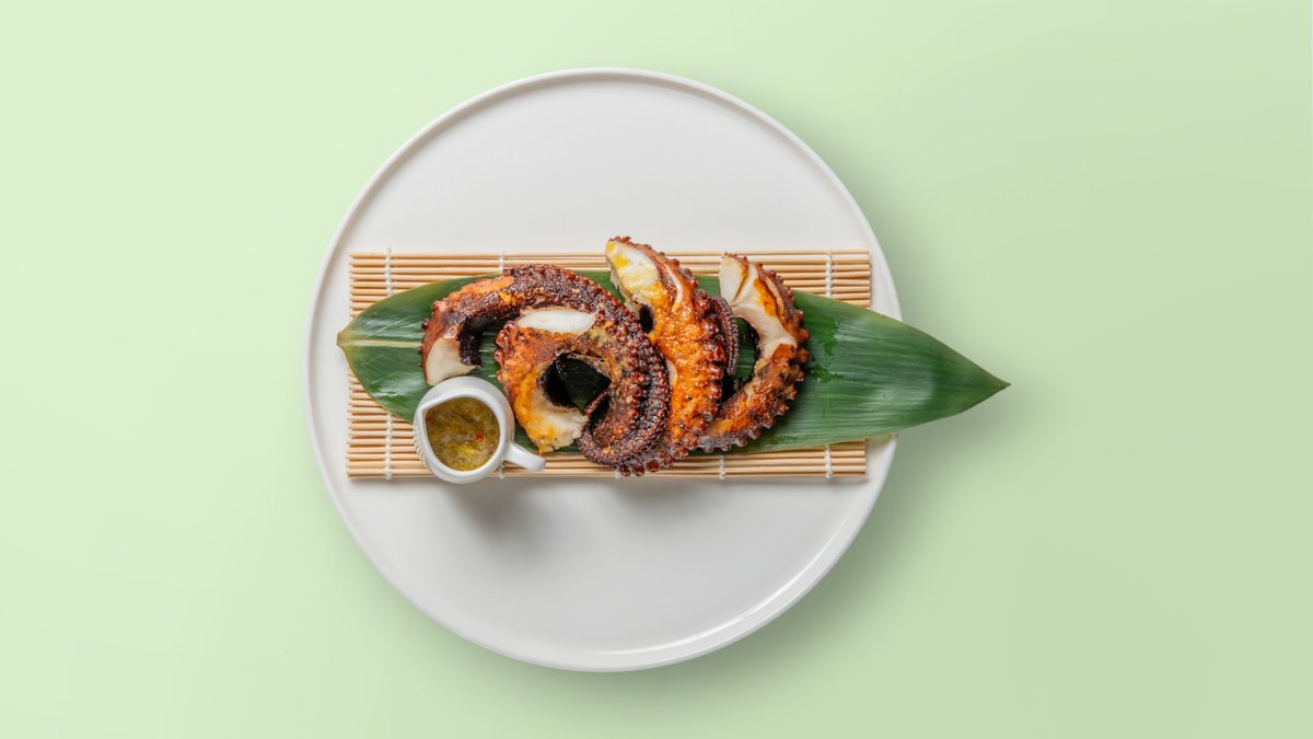 Karpacio oktapodi e shoqeruar me veze peshku dhe dressing tropikal