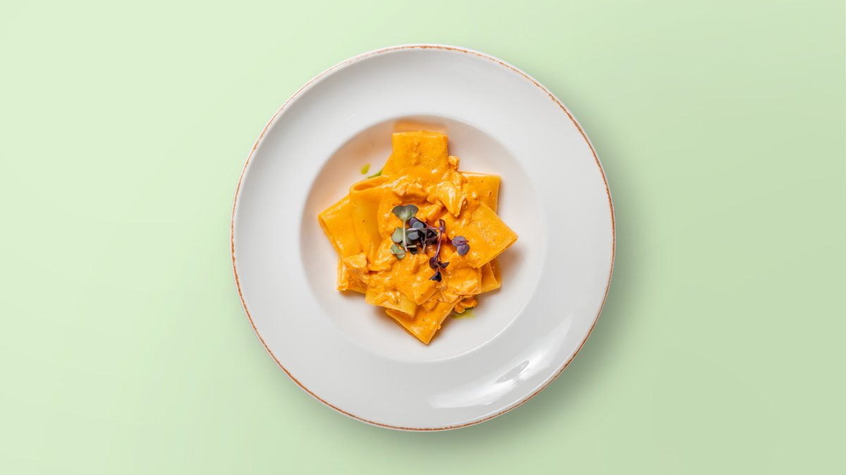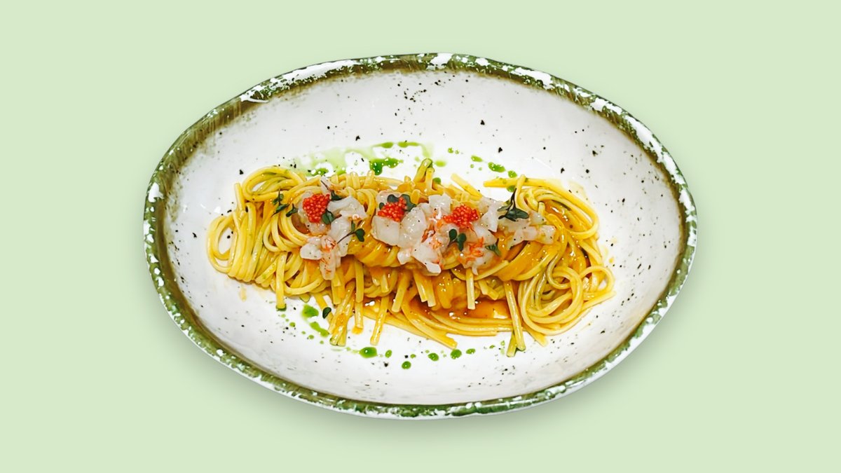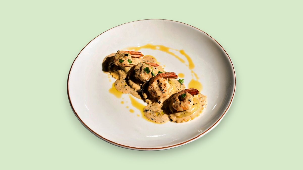 Ravioli Rikota dhe spinaq,karkalec,tartuf,pana