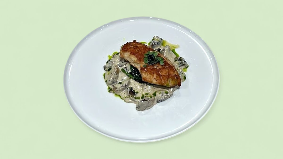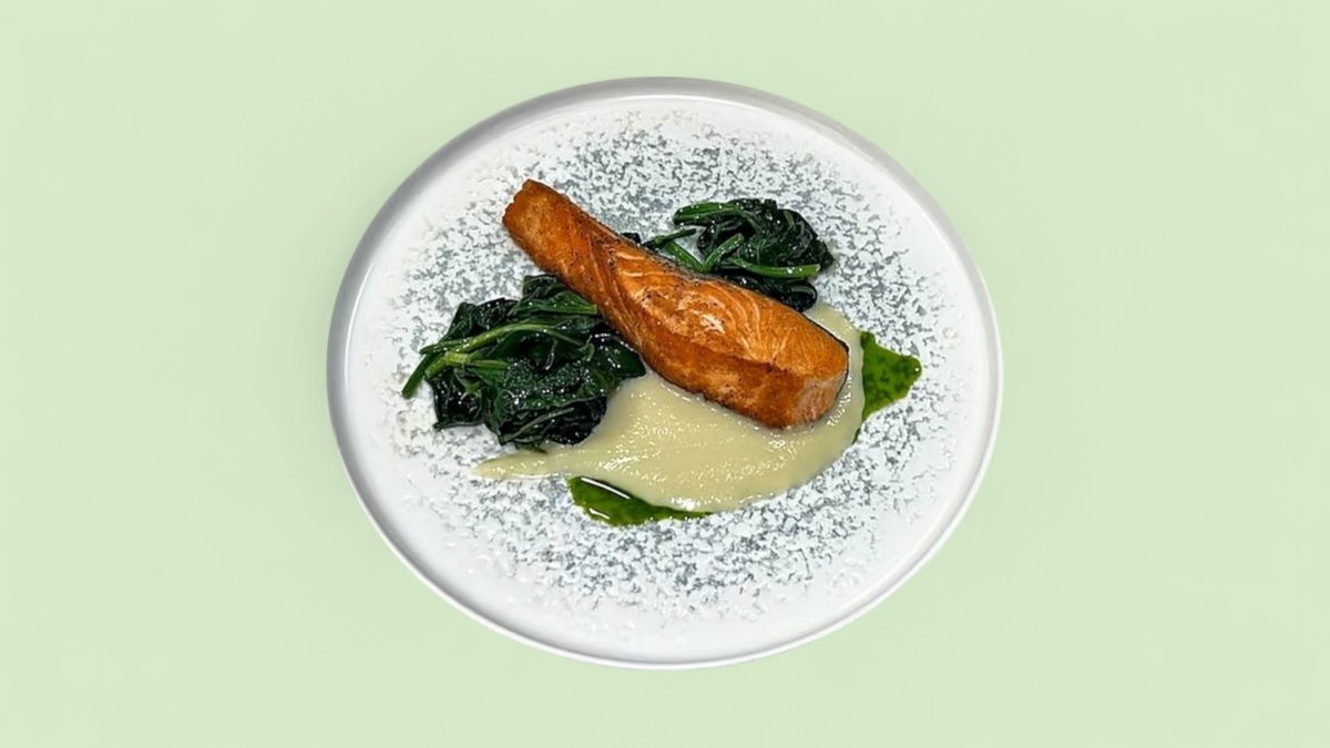 Fileto Salmoni, me krem finoku dhe spinaq sote
