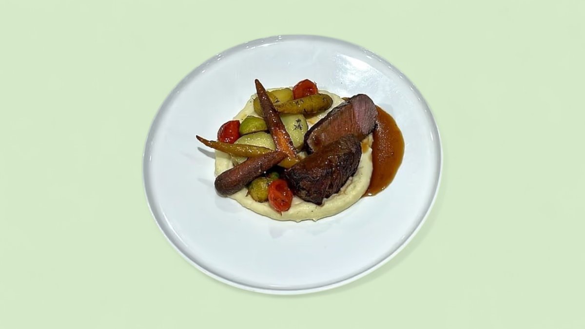 Fileto viçi me pure, perime të stinës & salcë demi-glace