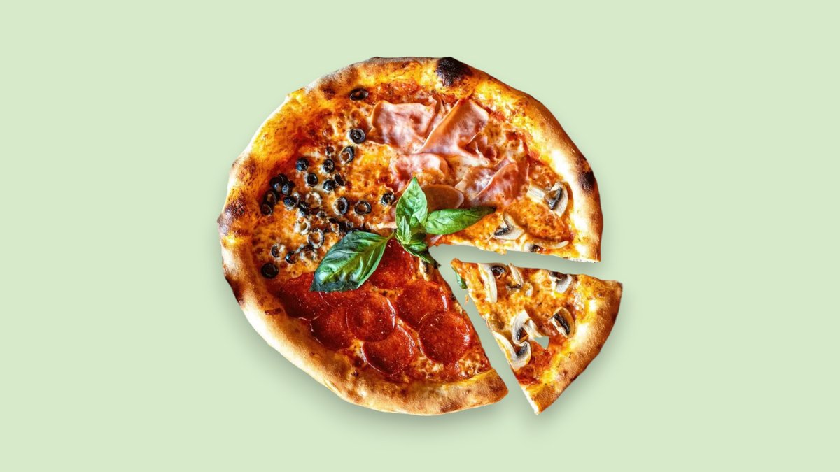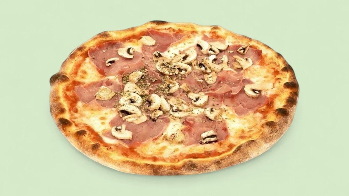 Salcë domateje, mocarela, proshutë cotto dhe kërpudha