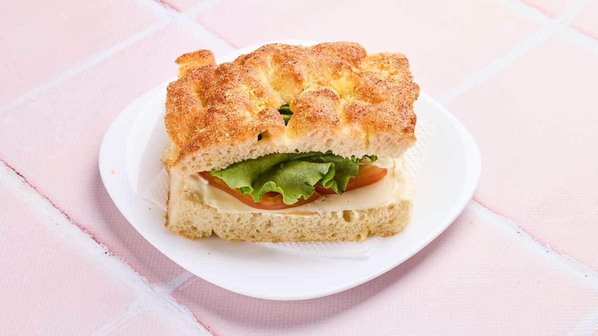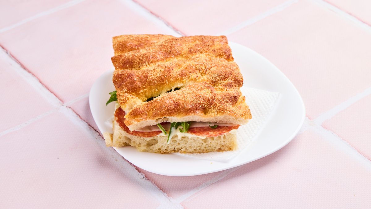 Pink sauce, cheese, mortadella, salad, tomatoes