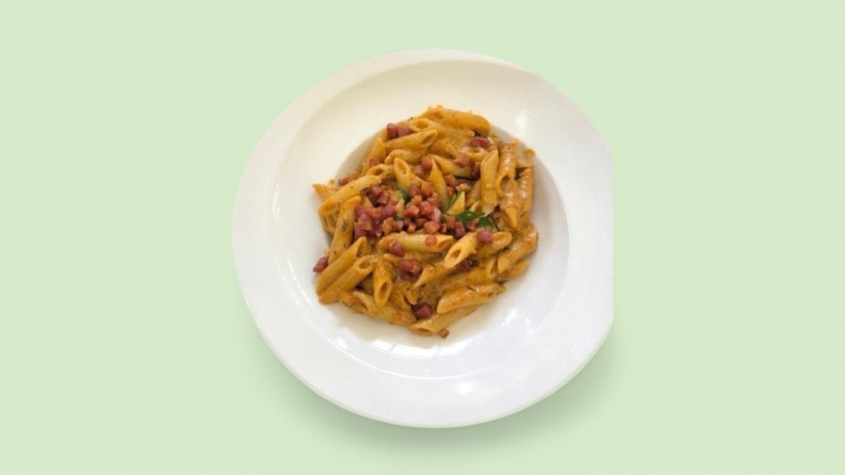 Guanciale, white wine, red pepper, percorino romano, black pepper, pomodorini