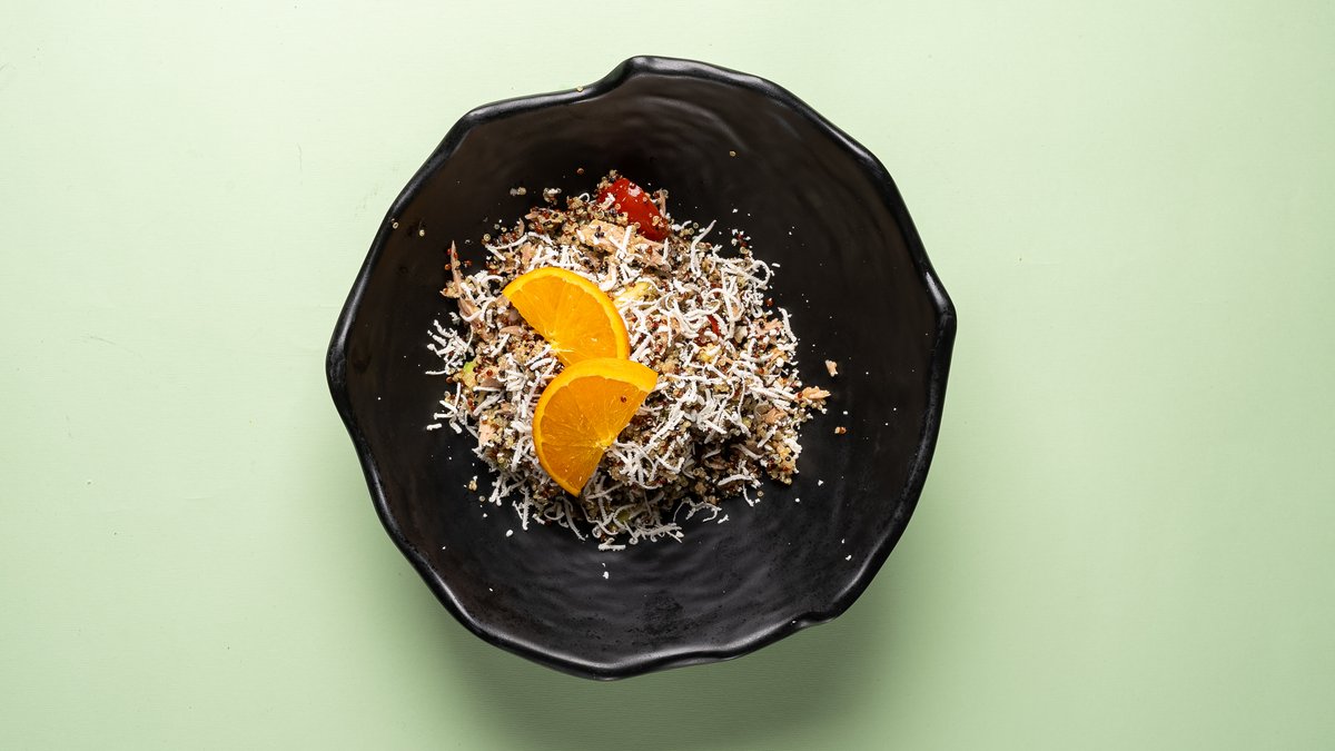 Spinach, orange, pomegranate, walnuts, balsamic vinegar
