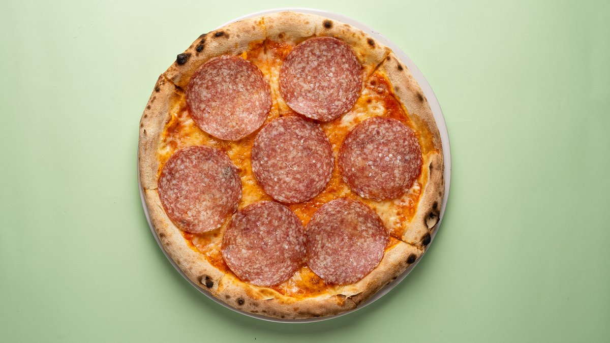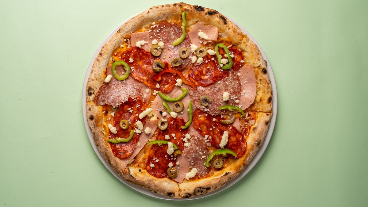 Sauce, mozzarella, ham, milano, spicy, peppers, olives