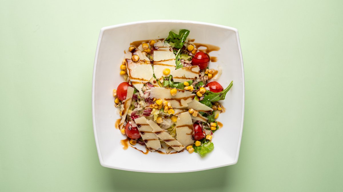Iceberg, chicken fillet, pomodorini, corn, grana, caesar sauce