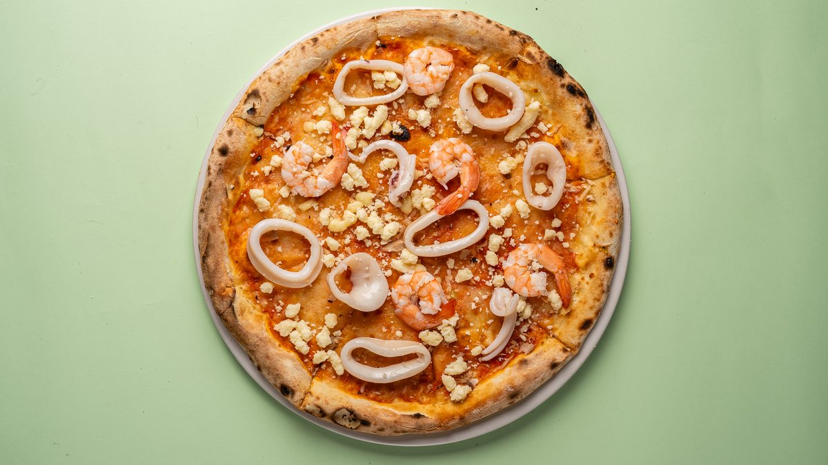 Sauce, mozzarella, seafood / sauce, mozzarella, seafood