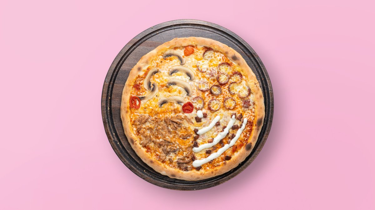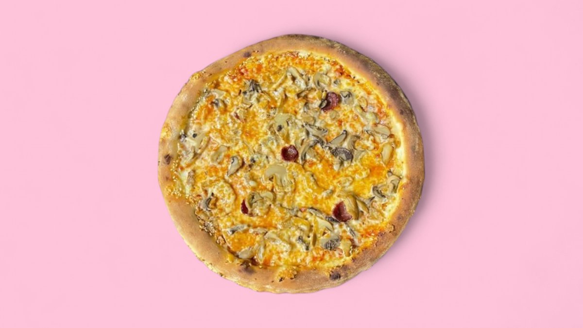 Sesame, marinated sauce, suxhuk sausage, ham, guda, pomodorini, fresh mushrooms, peppers