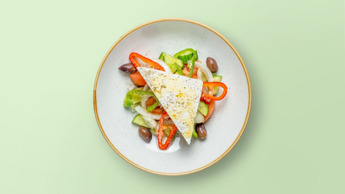 Domate, trangull, qepë, ullinj, djathë i bardhë, speca